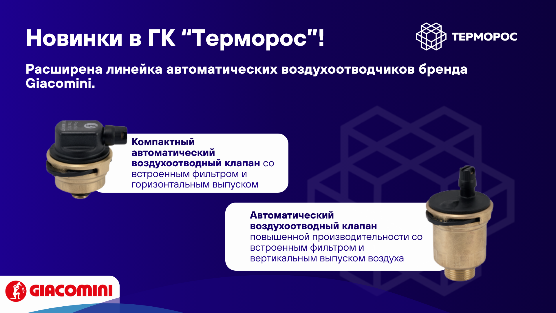 Рады сообщить о расширении линейки автоматических воздухоотводчиков Giacomini.