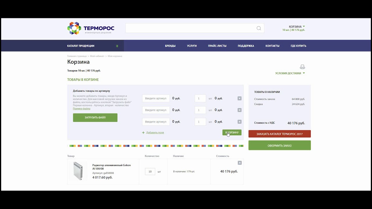 Личный кабинет предоставляет партнерам ГК «Терморос» уникальные возможности приобретения инженерного оборудования в пару кликов. Также Личный кабинет имеет обширный функционал, который сделает вашу работу еще более комфортной и оперативной. На этой странице вы можете ознакомиться с основными сервисами, которые предлагает Личный кабинет.